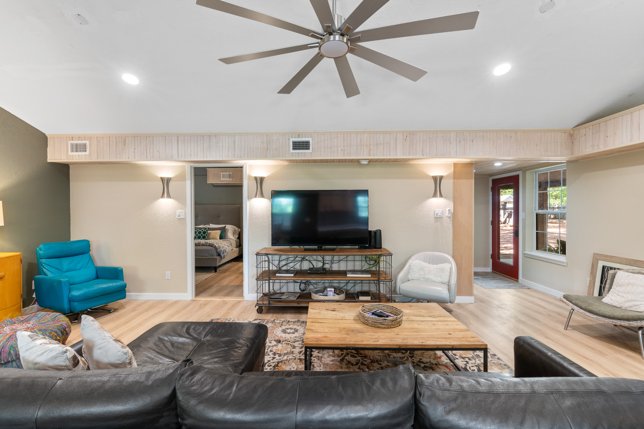 Each space is thoughtfully designed for comfort and privacy, with inviting common areas perfect for relaxing or entertaining. Whether you’re hosting friends, welcoming guests, or enjoying the vibrant heart of the Hill Country, this property offers both flexibility and charm.